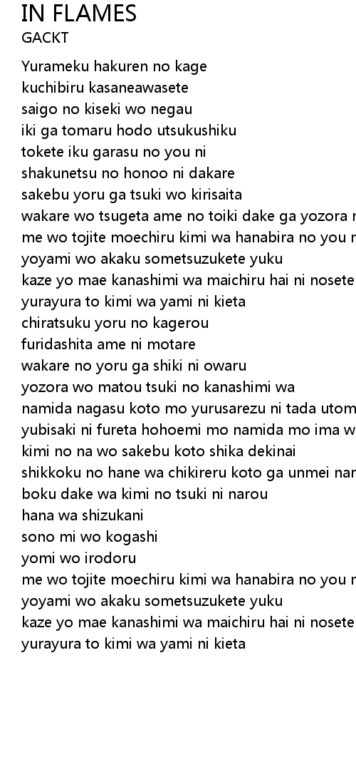 | kaze yo mae kanashimi wa maichiru hai ni nosete | |