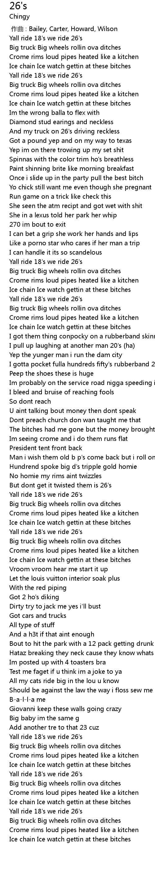 | [00:24.10] | Yall ride 18's we ride 26's |