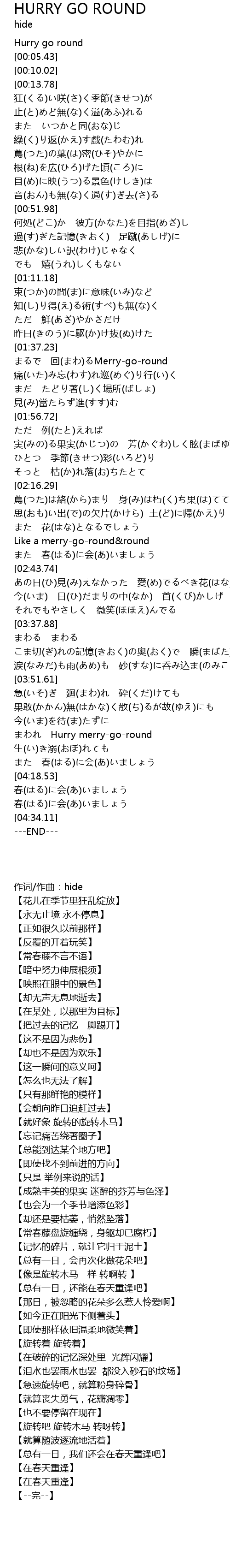 | [04:03.63] | まわれ Hurry merry-go-round |
