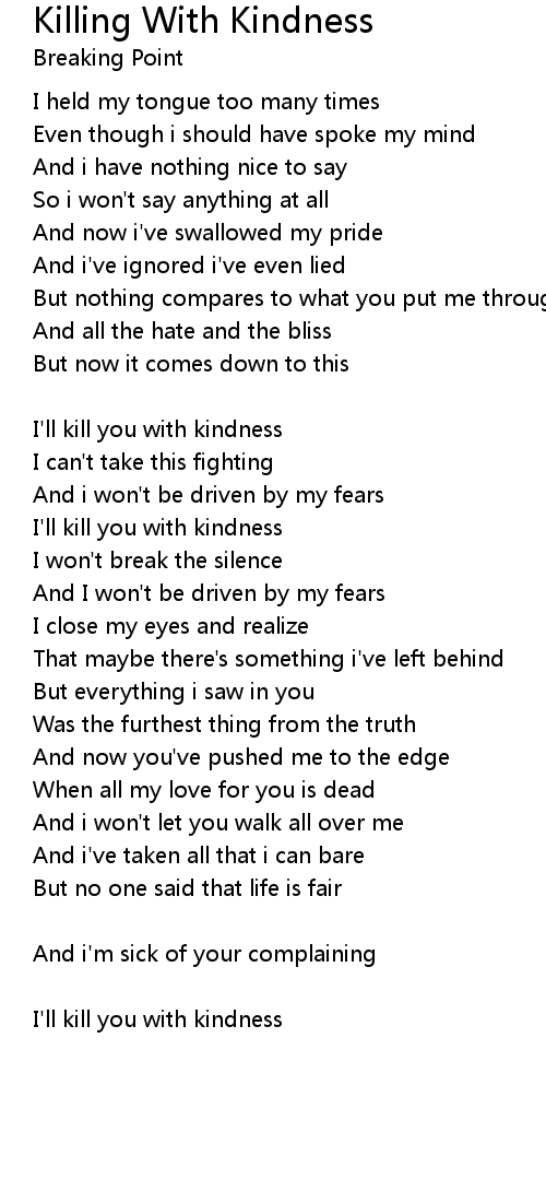 I'll kill you with kindness |