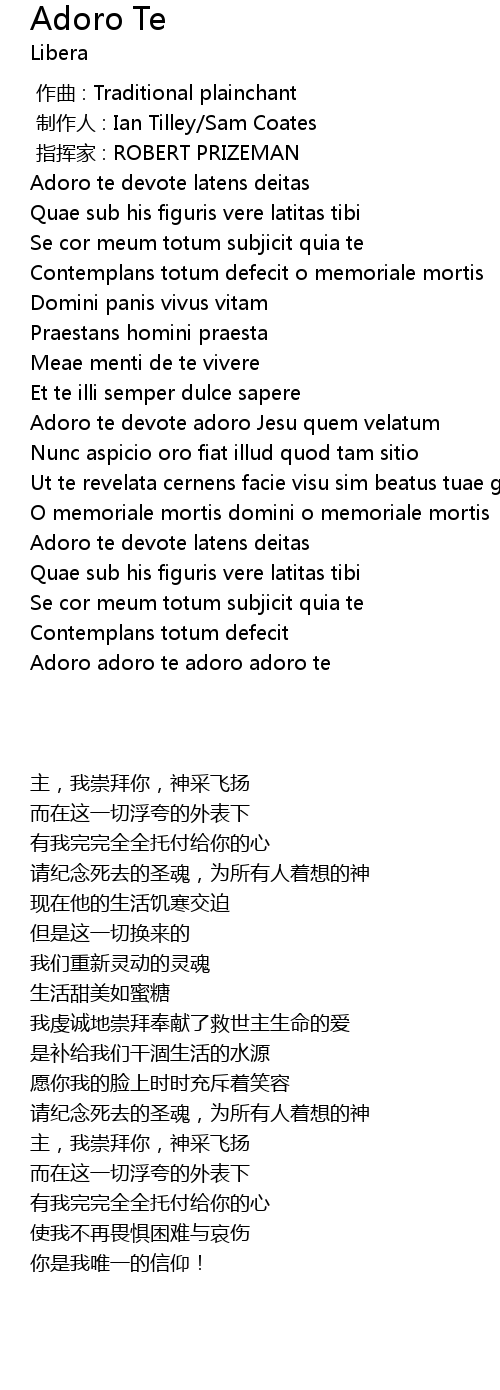 | [03:20.20] | Adoro adoro te adoro adoro te |