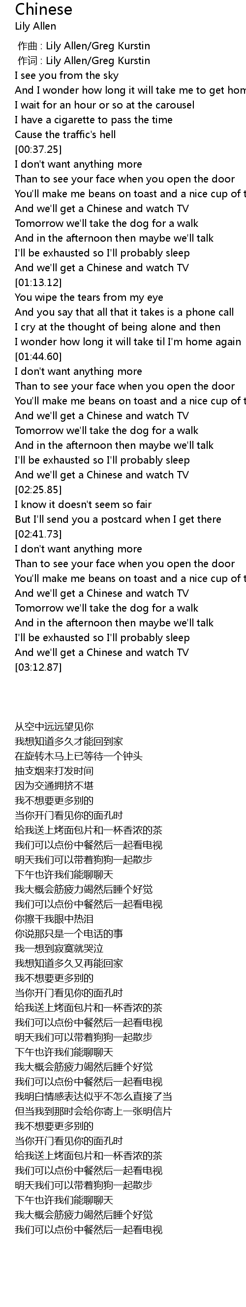 | [02:52.01] | And we'll get a Chinese and watch TV |