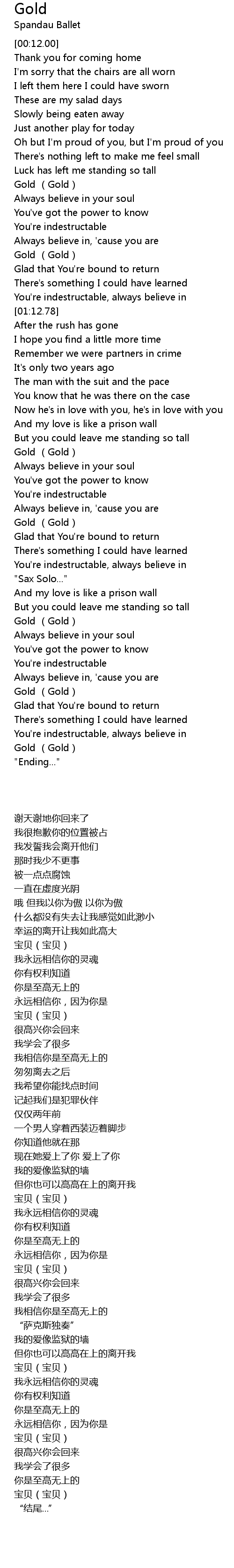 | 专辑 | Gold - The Best Of Spandau Ballet |