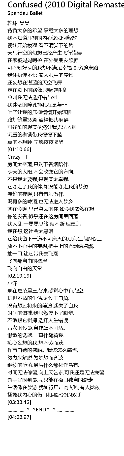 | [02:50.66] | 没有想过将来的前途.迷失了自我. |
