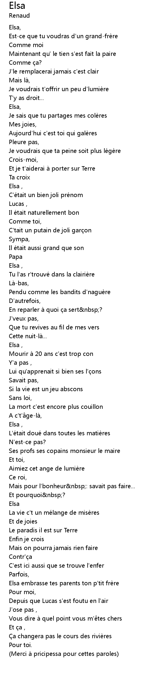 | Merci a pricipessa pour cettes paroles |