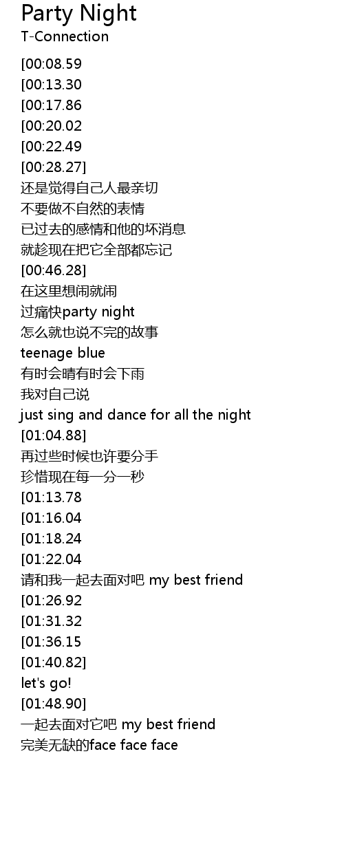 | [00:48.75] | guò tòng kuài party night |