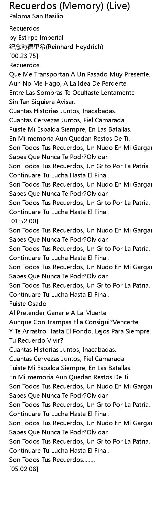| [02:52.00] | Son Todos Tus Recuerdos, Un Grito Por La Patria. |