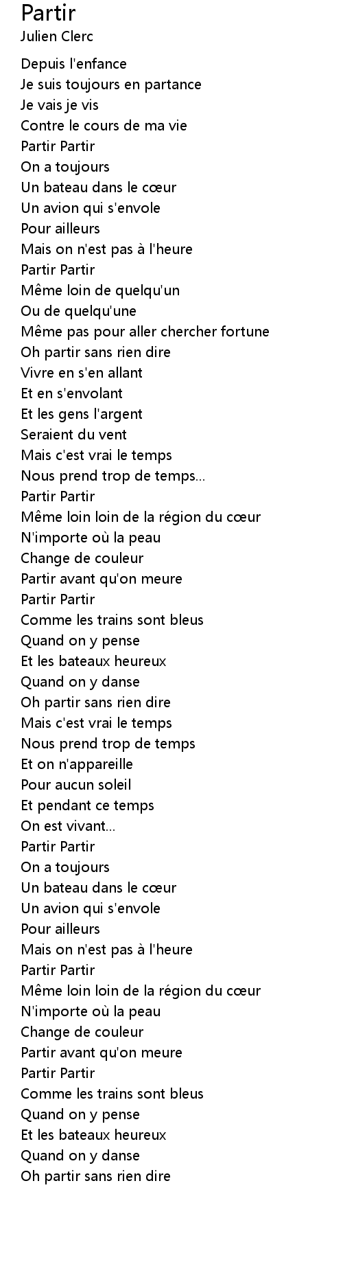 | 歌曲 | Partir |