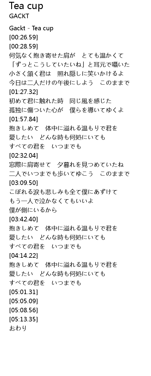 | [00:00.00] | Gackt - Tea cup |