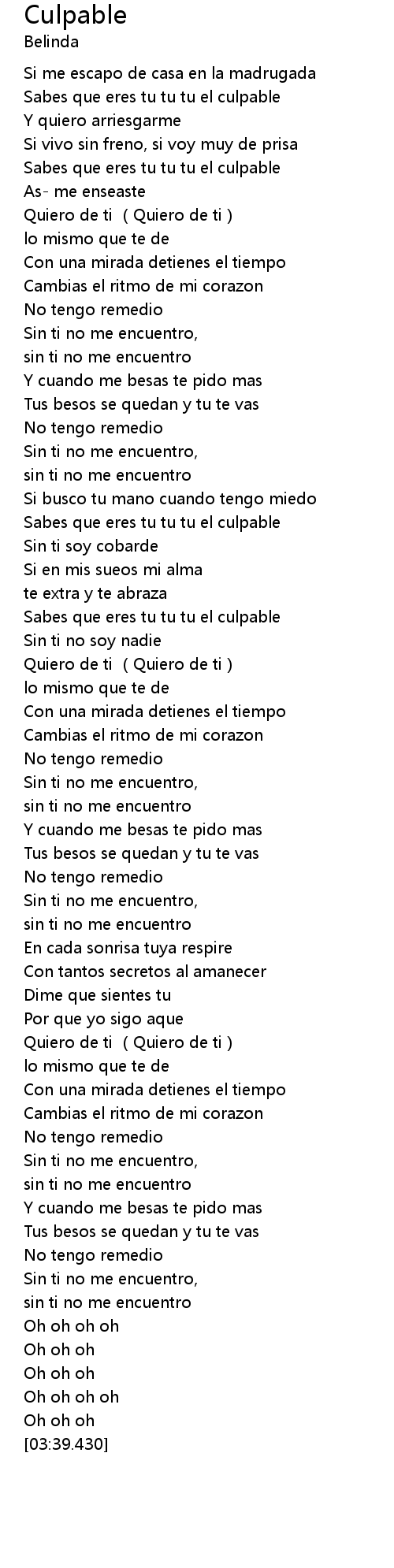 | [00:18.120] | Sabes que eres tu tu tu el culpable |