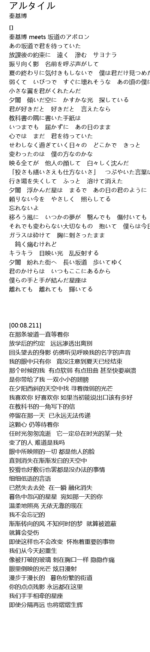 | [00:08.211] | 秦基博 meets 坂道のアポロン |