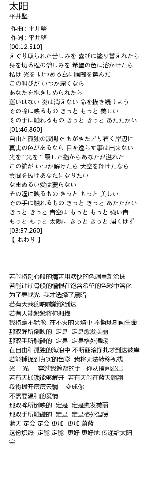 | [03:40.170] | 这份炽热 定能 定能 更好 更好地 传递给太阳 |