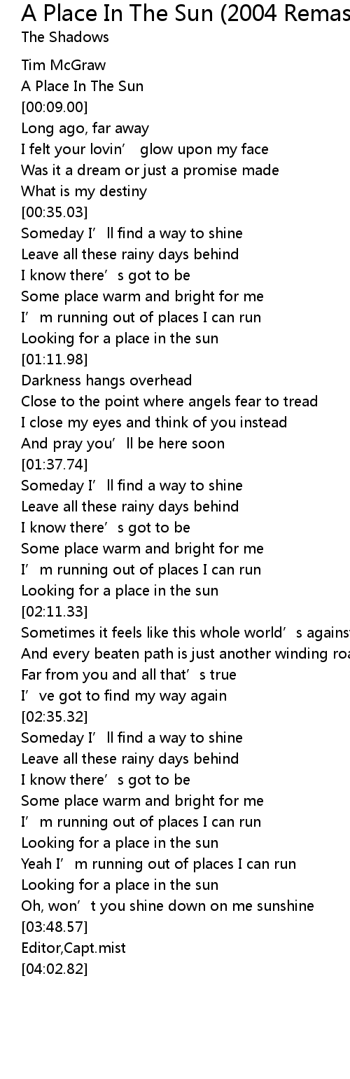 | 歌曲 | A Place In The Sun (2004 Remastered Version) |