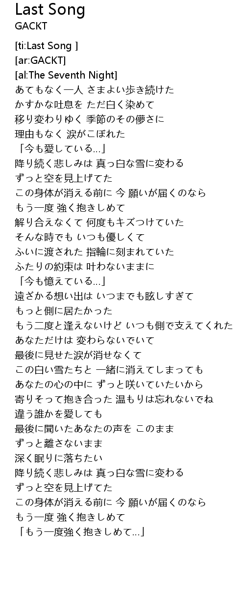 | [04:46.03] | 最後に聞いたあなたの声を このまま ずっと離さないまま |