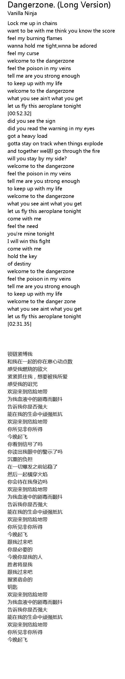 | [02:20.41] | 欢迎来到危险地带 |