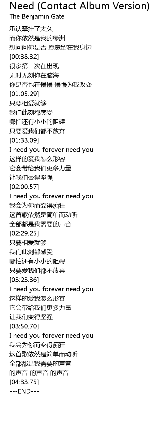 | [02:58.80] | zhǐ yào xiāng ài jiù gòu |