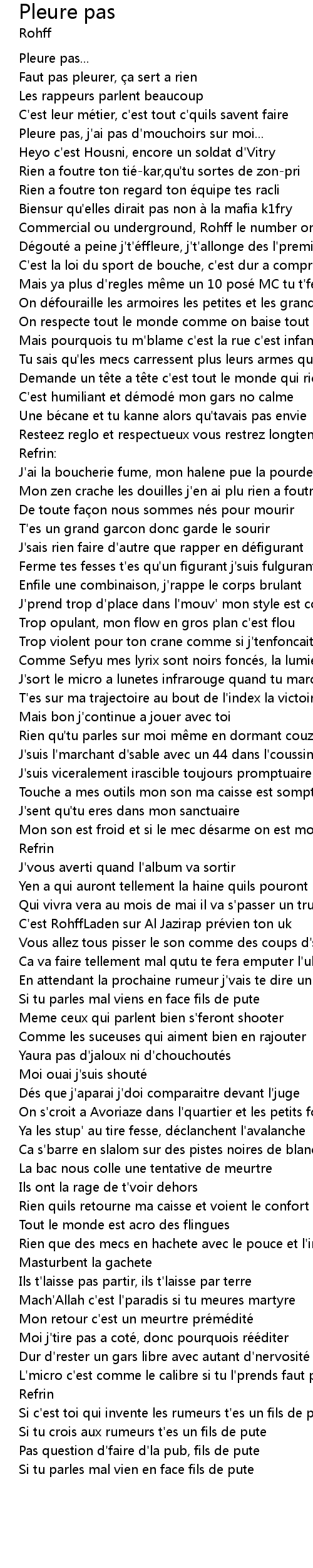 | Pleure pas, j'ai pas d'mouchoirs sur moi... | |