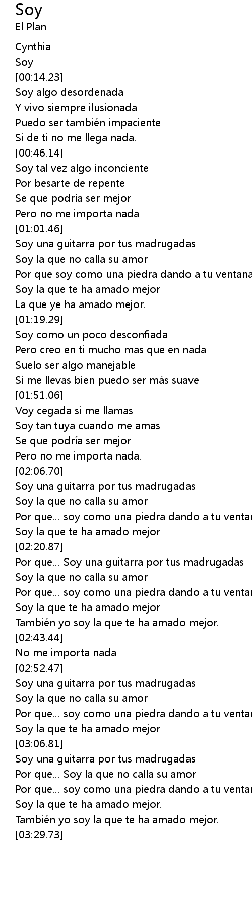 | [03:25.65] | Tambié n yo soy la que te ha amado mejor. |