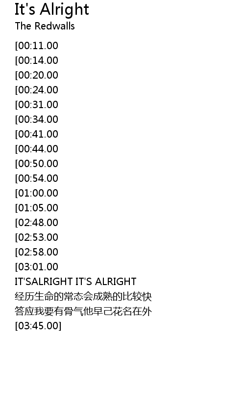 | [03:20.00][02:48.00][01:09.00] | ō IT' S ALRIGHT IT' S ALRIGHT |