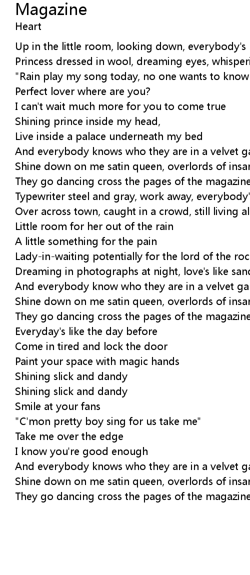 | They go dancing cross the pages of the magazine | |