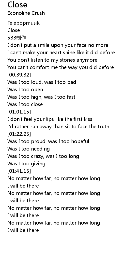 | [00:57.46] | Was I too close |