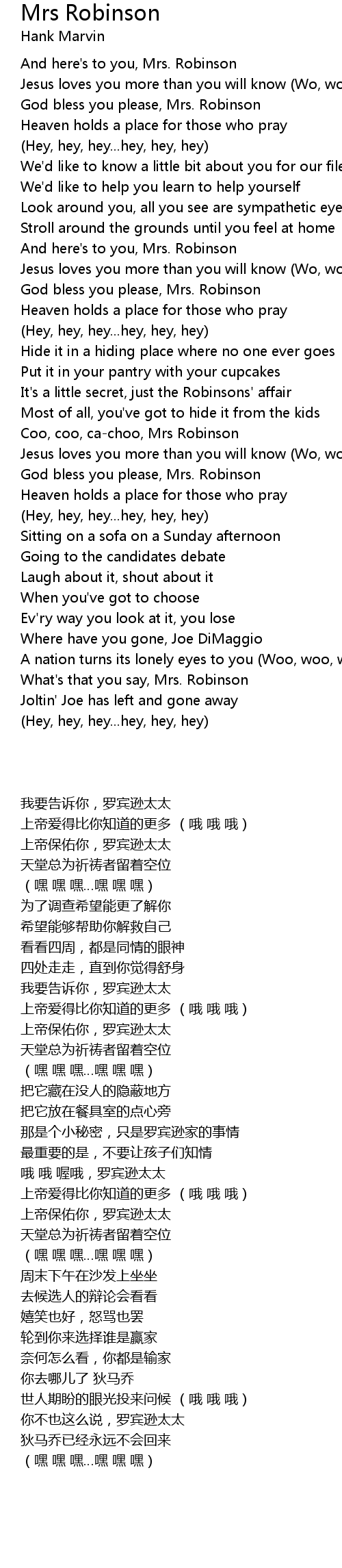 Coo, coo, ca-choo, Mrs Robinson |