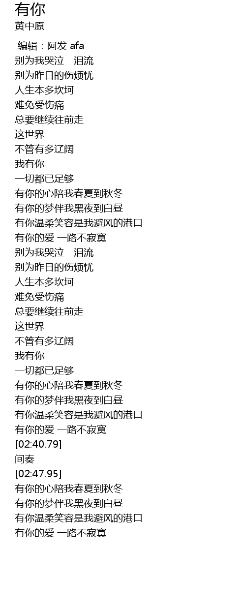 | [02:05.17] | 我有你 |