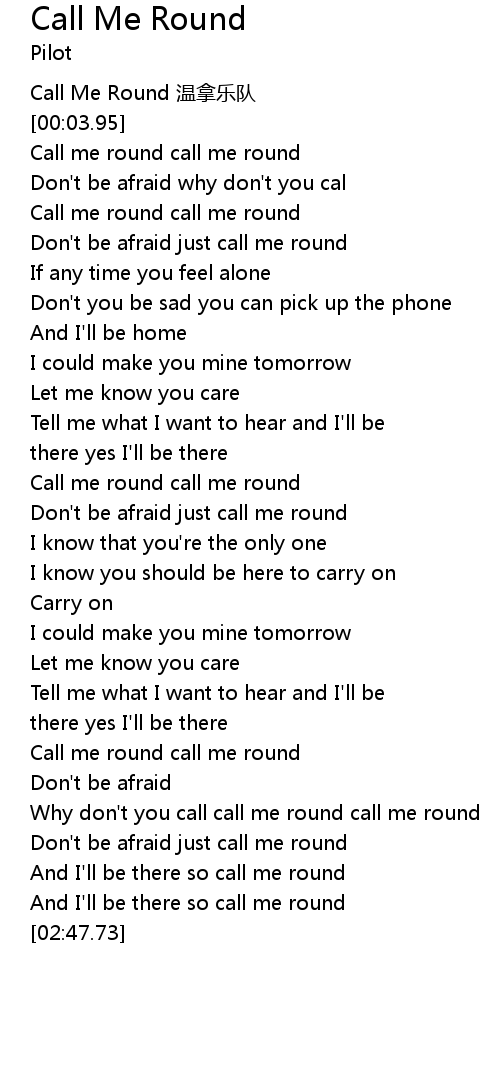 | [01:17.76] | Call me round call me round |