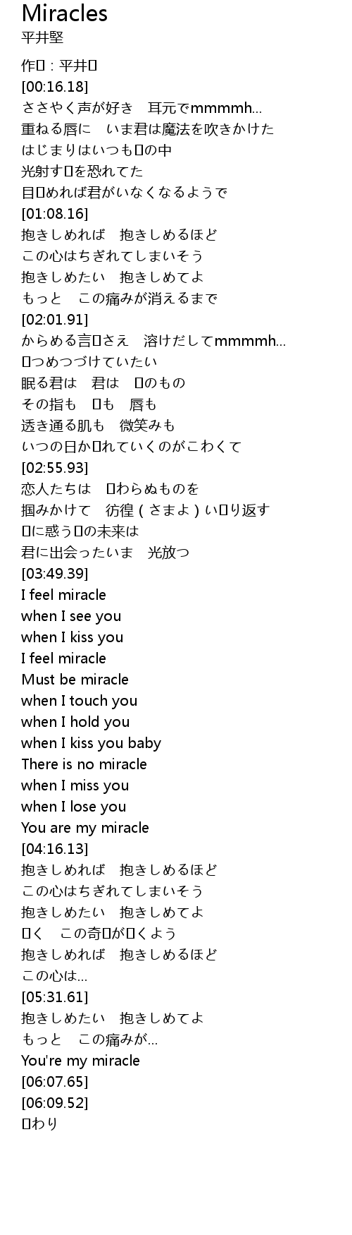 | [00:18.18] | ささやく声が好き 耳元でmmmmh... |