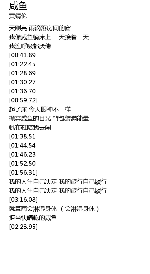 [02:50.20][01:46.23] 咸鱼翻身那天我会记住你的笑脸当作纪念