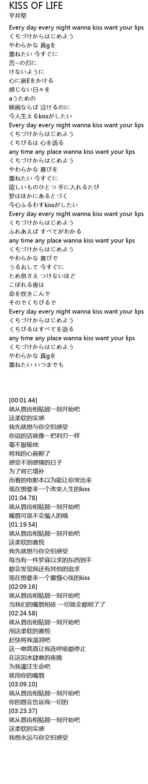 | [02:00.32] | jīn xīn kiss |