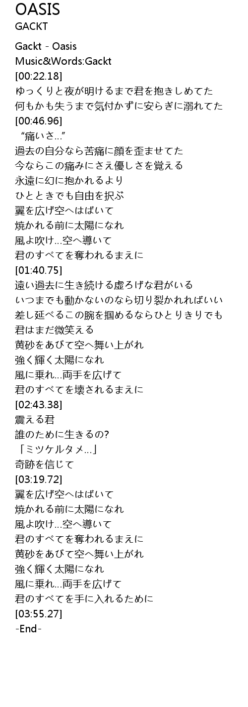 | [00:00.45] | Gackt Oasis |