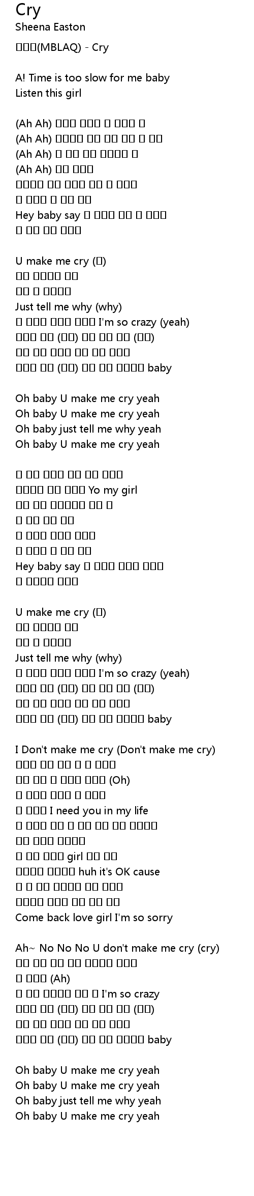 Oh baby U make me cry yeah |