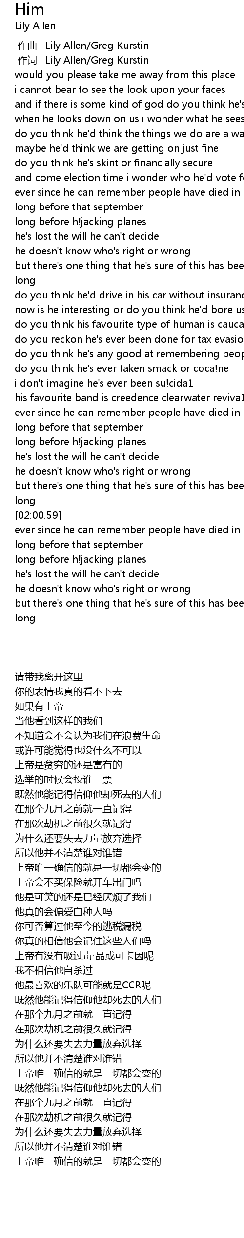 | [00:00.333] | 作词 : Lily Allen/Greg Kurstin |