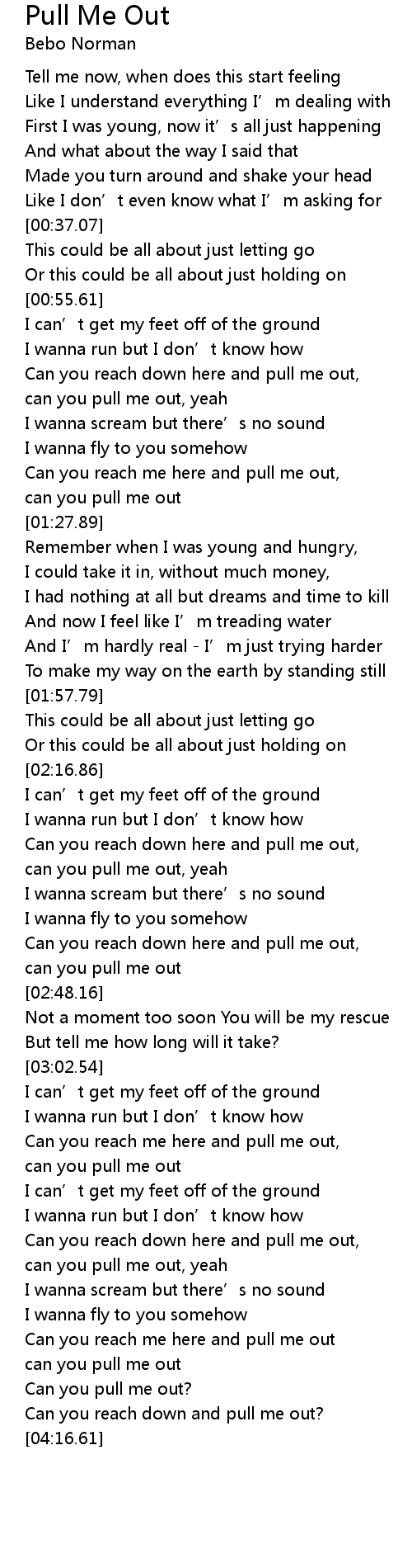 | [03:51.95] | Can you pull me out? |