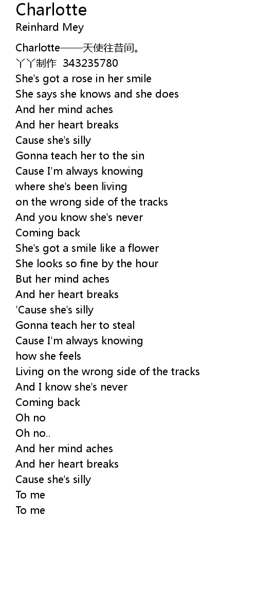 | [00:01.00] | Charlotte tiān shǐ wǎng xī jiān. |