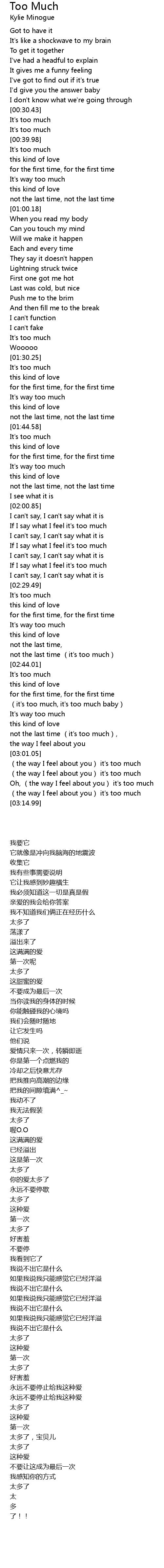 | [03:08.39] | Oh, (the way I feel about you) it's too much |