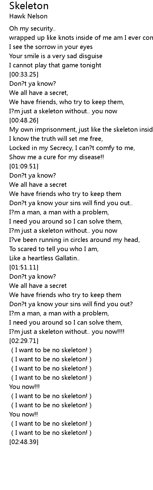 | [02:24.48] | I? m just a skeleton without.. you now!!!! |