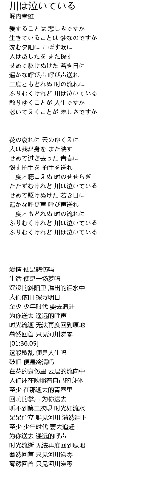 | [03:01.07] | 呆呆伫立 唯见河川 潸然泪下 |