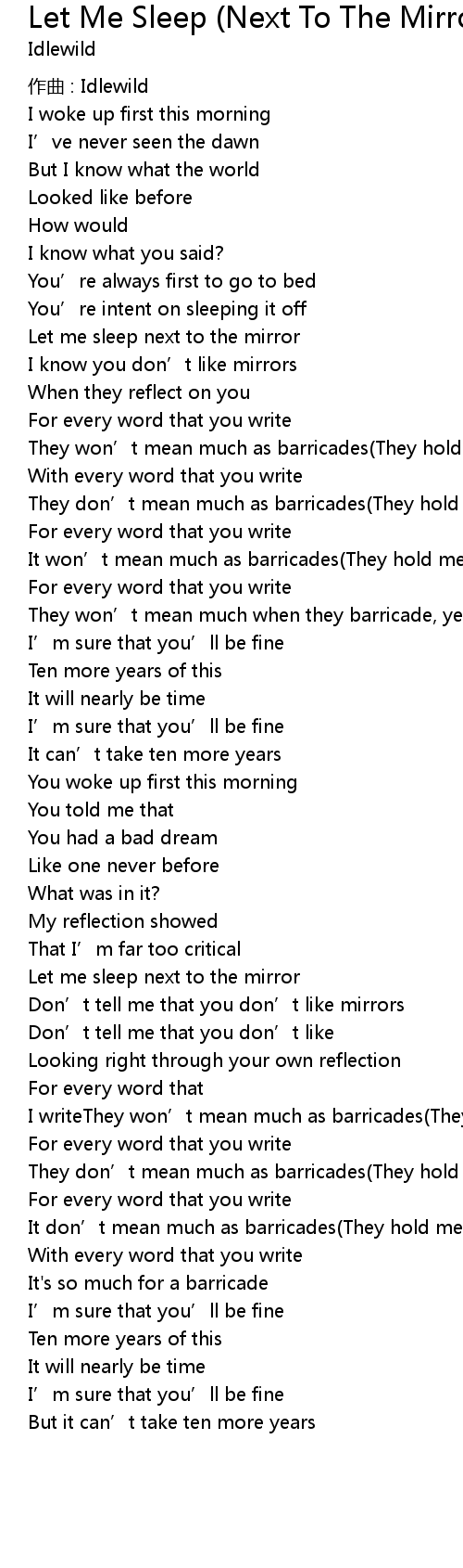 | 歌曲 | Let Me Sleep (Next To The Mirror) |