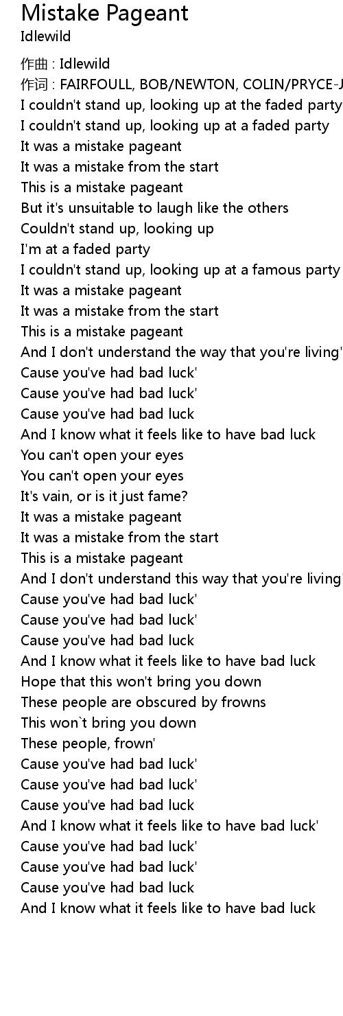 | 作词 : FAIRFOULL, BOB/NEWTON, COLIN/PRYCE-JONES, ROD/WOOMBLE, RODDY | |