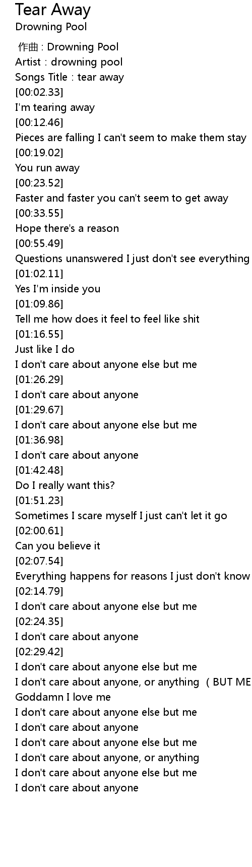| [02:32.86] | I don't care about anyone, or anything (BUT ME) |