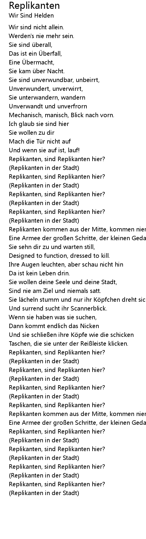 | Replikanten kommen aus der Mitte, kommen niemals ins Wanken. | |