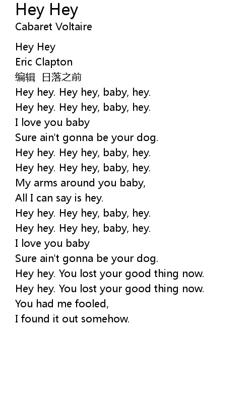 | [00:44.82] | Hey hey. Hey hey, baby, hey. |
