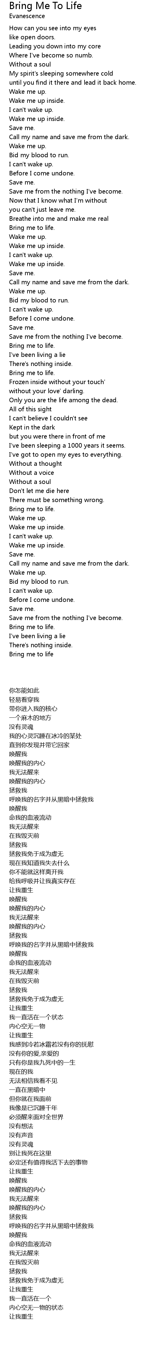 Bring me to life |