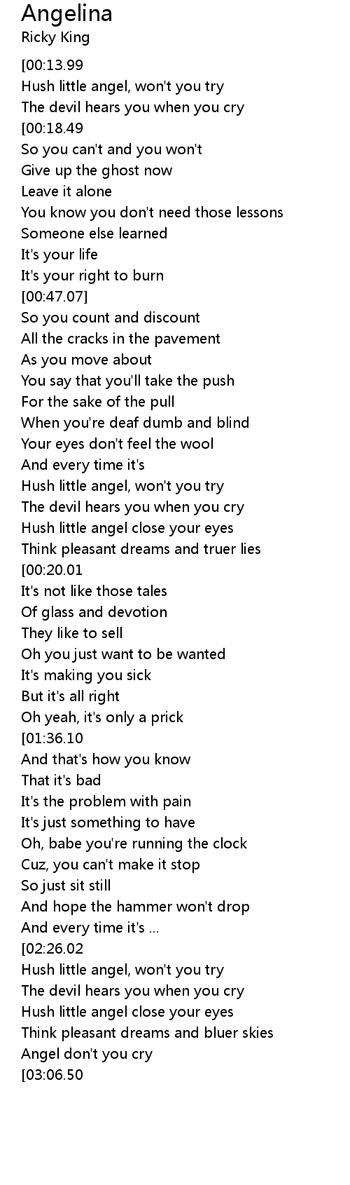 | [03:01.97] | Angel don't you cry |