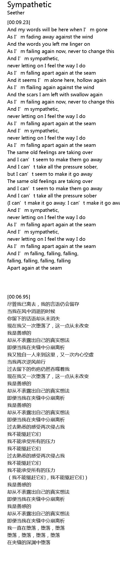 | [02:12.77] | As I' m falling apart again at the seam |