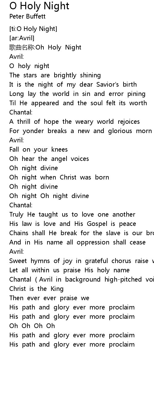 | [00:02.05] | gē qǔ míng chēng: Oh Holy Night |