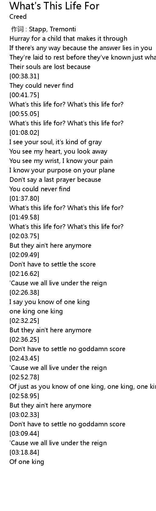 | [01:38.55] | What' s this life for? What' s this life for? |