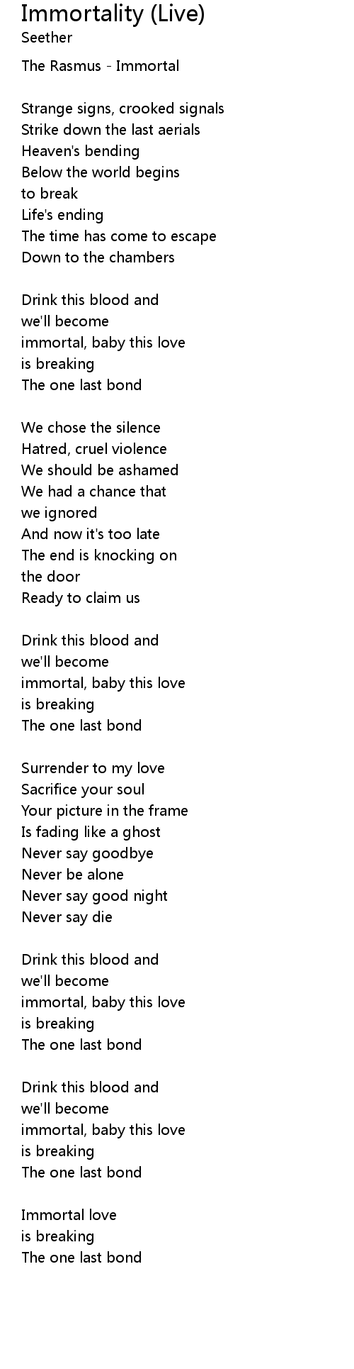 immortal, baby this love